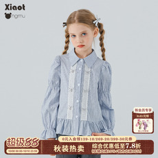 小童木 俏皮假两件女童衬衫秋装2025新款荷叶边上衣女大童娃娃衫