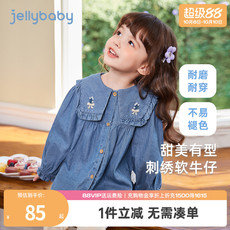女童秋季软牛仔衬衫宝宝娃娃领衬衣纯棉小童法式上衣秋装儿童衣服