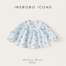 Elfairy宝宝娃娃领衬衫女童法式碎花衬衣儿童春秋装婴儿打底衫棉