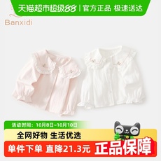Elfairy女童花边衬衣纯棉宝宝婴儿上衣儿童娃娃衫白色衬衫春秋装