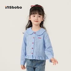 拉夏贝尔童装女童衬衫春秋款2025新款儿童宝宝娃娃领上衣衬衣秋装