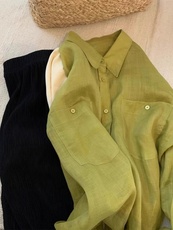 YANGLE_亚麻衬衫短裤套装女2025新款老钱风宽松防晒衬衫休闲长裤