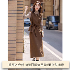 森系套装女秋冬新款复古针织叠穿背心流苏毛衣裙衬衫裙子两件减龄