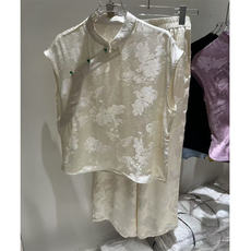 新中式斜襟小飞袖衬衫人丝提花直筒裤套装2025新款夏季穿搭女