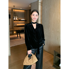 Maven Lin 高级感法式飘带丝绒衬衫女立领秋冬新款长袖复古上衣