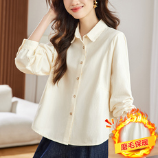 初影 磨毛加厚衬衫女长袖2025秋装新款设计感小众宽松纯棉衬衣