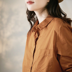 谷家 高级咖简约百搭长袖衬衫女 秋季新款文艺复古纯色全棉上衣