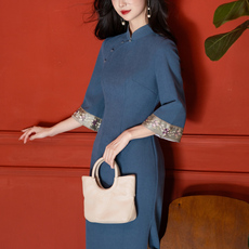 新式旗袍改良版连衣裙女长款气质年轻款宽松复古刺绣中国风女装春
