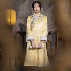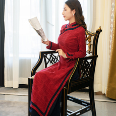 老上海加绒加厚长旗袍秋冬新款女中国风改良版复古日常长袖连衣裙