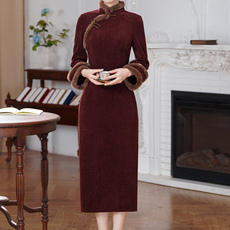 秋冬加绒加厚旗袍复古高端喜婆婆婚宴气质优雅中国风长款连衣裙女