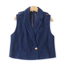 牛仔西装马甲 春秋新款外贸女装简约休闲西装领一粒扣马甲33914