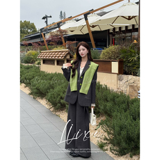 Liixu 设计感休闲小西装外套搭针织披肩高腰阔腿裤时尚套装两件套
