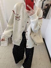 25秋季新款kitty猫刺绣长袖外套棒球服韩版宽松百搭女波浪边外套