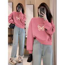 山东即墨卫衣女春秋季2025新款爆款圆领宽松大码胖mm时尚外套上衣