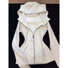 巨好看~外贸春夏女装瑜伽服连帽开衫女款跑步运动弹力卫衣外套