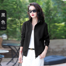 大码女装纯色立领正肩修身卫衣女春秋季胖mm百搭显瘦开衫上衣外套