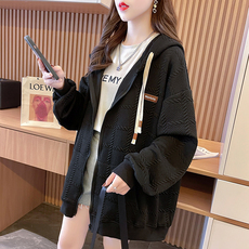 春秋宽松bf风韩版拉链针织连帽开衫卫衣连帽薄外套休闲防晒上衣女