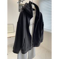 高级感好品质秋冬女胖mm纯棉卫衣开衫宽松连帽加绒中长款加厚外套