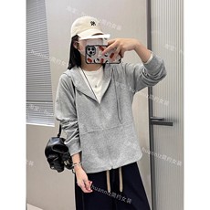 虫小小 时髦假两件拼接半开襟长袖连帽卫衣女休闲短款外套秋923E