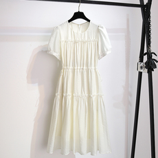 【白芷】白色连衣裙女夏2025新款圆领雪纺长裙蕾丝仙女裙子