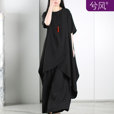 夏季2024新款中国风改良旗袍连衣裙民族风禅意茶服女刺绣亚麻长裙