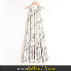 瑕疵女装夏季真丝桑蚕丝连衣裙名媛风碎花长裙印花真J14