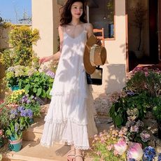 法式白色仙女裙吊带裙海边度假连衣裙女显瘦夏季裙子小众气质长裙
