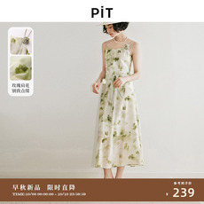 茶歇法式油画碎花吊带连衣裙女大码夏季气质高级感收腰显瘦长裙