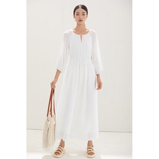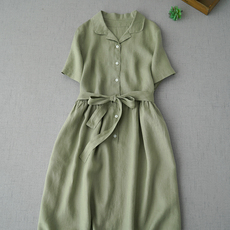 外贸原单 出口德国夏大码女装毛边款 纯亚麻素色连衣裙休闲长裙