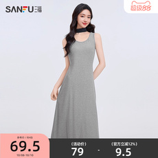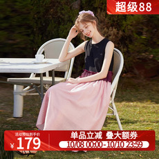 华子家 设计感打结圆领无袖背心连衣裙女25夏季宽松A字长裙43596