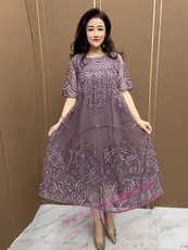 中年女装夏装妈妈真丝连衣裙洋气高贵大码200斤时尚宽松遮肚长裙