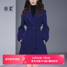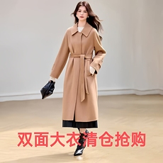 双面羊绒大衣女中长款秋冬新款高端系带宽松过膝羊毛呢子外套秋冬