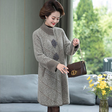 高档中老年女装冬装冬天中长款加绒加厚呢子大衣妈妈装毛呢外套女
