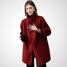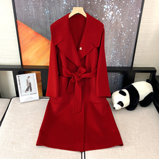 【羊绒】安可拉红色毛呢外套双面呢子大衣中长款kbne秋冬新款女装