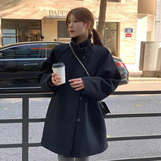 复古英伦风立领单排扣呢子外套女2025冬季新款宽松百搭中长款大衣