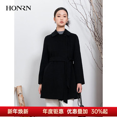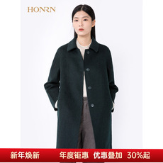 HONRN/红人中长款翻领双面羊毛呢子大衣外套女秋冬款HI55OD761