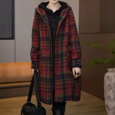 Rou8ao微胖大码女装格子呢子大衣女秋冬中长款高级感宽松毛呢外套
