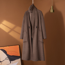阔版双面羊绒大衣女中长款秋冬高级感围巾款2025新款羊毛呢子外套