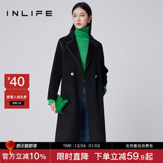 伊纳芙羊毛双面呢大衣女装2025冬新款高级气质中长款宽松呢子外套