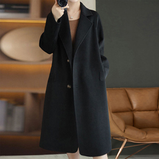 黑色双面羊绒呢子大衣2025新款女装秋冬韩版宽松中长款毛呢外套女