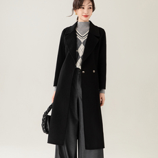 黑色正肩双面羊绒大衣女2025新款冬季中长款修身气质羊毛呢子外套