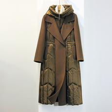 CV大码女装 冬季新品连帽呢子大衣羊毛中长款外套小个子胖MM显瘦