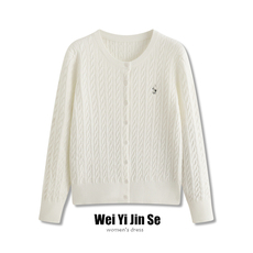 刺绣绣花圆领单排扣开衫小外套2025秋季新款减龄长袖女针织衫V127