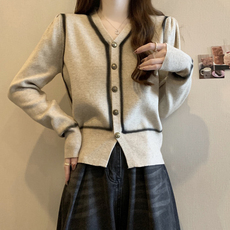 外贸日单小香风女装针织开衫秋季新款半圆领单排扣百搭气质上衣