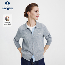 Navigare意大利小帆船翻领纯羊毛女毛衣2025秋季新款通勤针织开衫