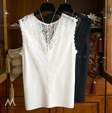 奥莱女装清仓半高领蕾丝针织无袖背心女木耳边立领镂空网纱打底衫
