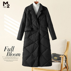 【断码清仓】M2女装冬季宽松大码90白鸭绒外套中长款西装领羽绒服