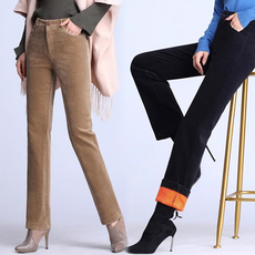 【23元清仓甩货】秋冬加绒时尚休闲 高腰弹力条绒小直筒长裤女裤