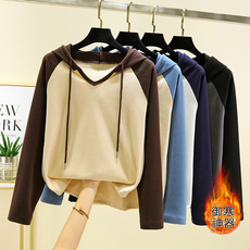 清仓德绒连帽t恤女秋冬德绒长袖V领打底衫大码可外穿加厚休闲上衣