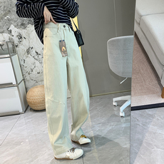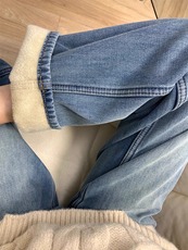 【清仓价】加绒牛仔裤女高腰秋冬大码胖mm高腰宽松阔腿直筒长裤